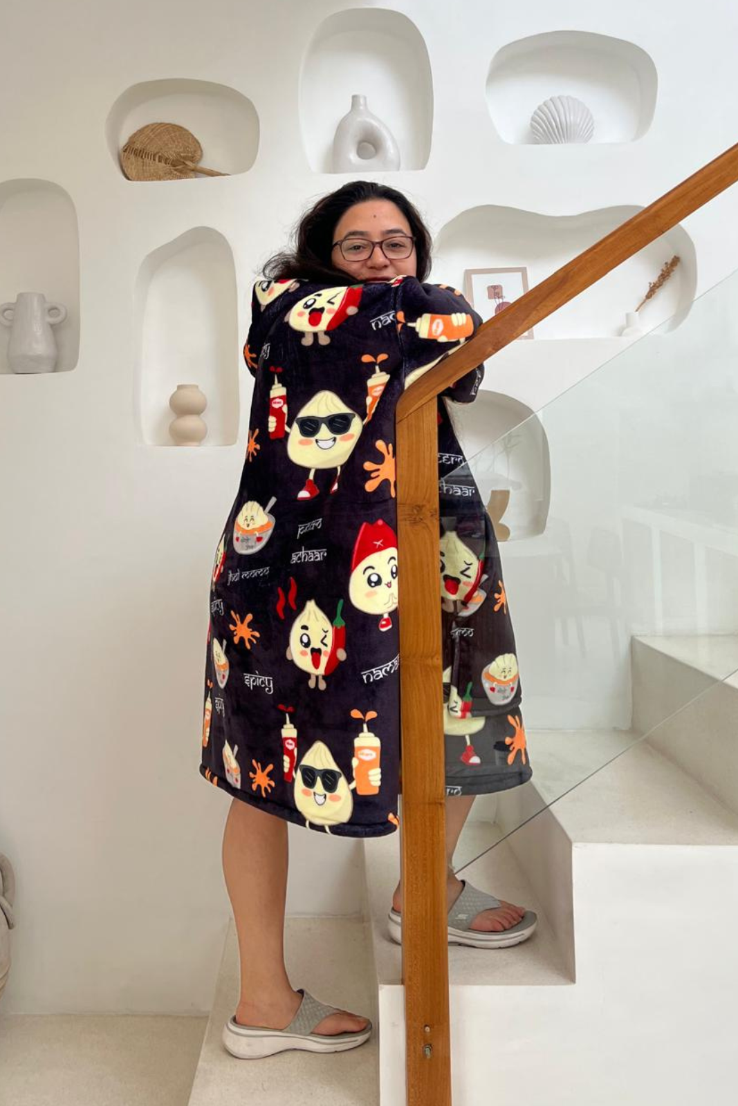 - Hay Hoddie is a super soft ONE SIZE FITS MOST hooded blanket. It is based on a 6XL hoodie. It is like the best winter jacket.